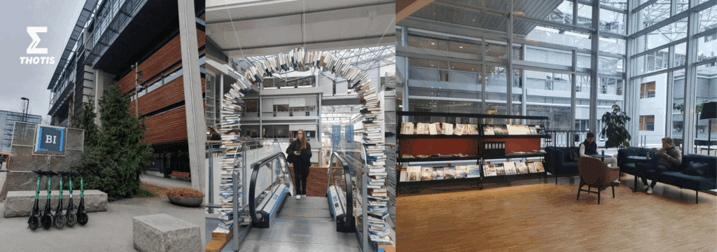 Deuxième plus grande école de commerce d’Europe, BI Norwegian Business School dispose d’un immense campus à Oslo, s’étendant sur 90 000 m². Véritable petit village, il propose à ses étudiants deux cantines, une salle de sport, des bibliothèques, des médiathèques et de nombreux espaces de détente.