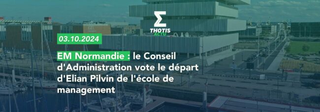 Selon un communiqué presse de l’EM Normandie, le Conseil d’Administration de l’Association EM Normandie réuni le 26 septembre 2024, a voté une résolution à la majorité, donnant tout pouvoir à Jean-Louis Grégoire, Président du CA, pour entrer en phase de discussion avec Elian Pilvin, Directeur Général de l’école depuis février 2020, afin d’organiser les modalités…