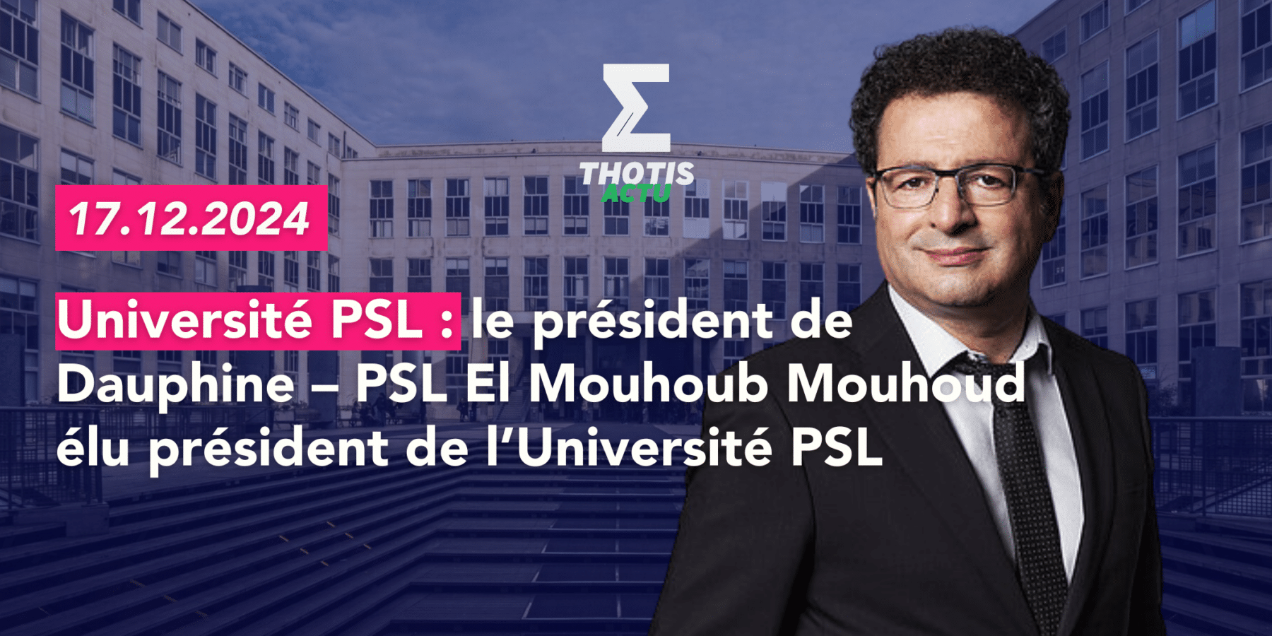 Ce vote témoigne de la confiance accordée par les différentes communautés à son projet de consolidation d’une grande université internationale articulé autour de 10 actions stratégiques. À lire aussi, en lien avec cet article : retrouve notre page dédiée à l’Université Paris Dauphine – PSL : https://thotismedia20260212101139.staging2.ydu.fr/universite-paris-dauphine-psl/ Docteur en Sciences Économiques de l’université Paris 1 Sorbonne (1991) et Agrégé des Facultés de Sciences économiques (1994), El Mouhoub Mouhoud est professeur à l’Université Paris Dauphine – PSL depuis 2006, où il enseigne l’économie internationale et dirige le Master Affaires Internationales & Développement. Il est également fondateur et directeur du Groupement de Recherches International du CNRS DREEM (Développement des Recherches Économiques Euro-méditerranéennes) crée en 2007, et membre du Laboratoire d’Économie de Dauphine (LEDa). Ses travaux de recherche actuels portent sur la localisation des activités et les relocalisations industrielles, la mondialisation, l’intégration européenne et les relations euro-méditerranéennes, ainsi que les migrations internationales. Il a notamment théorisé le phénomène de relocalisation industrielle, en particulier dans son ouvrage « Changement technique et division internationale du travail »
