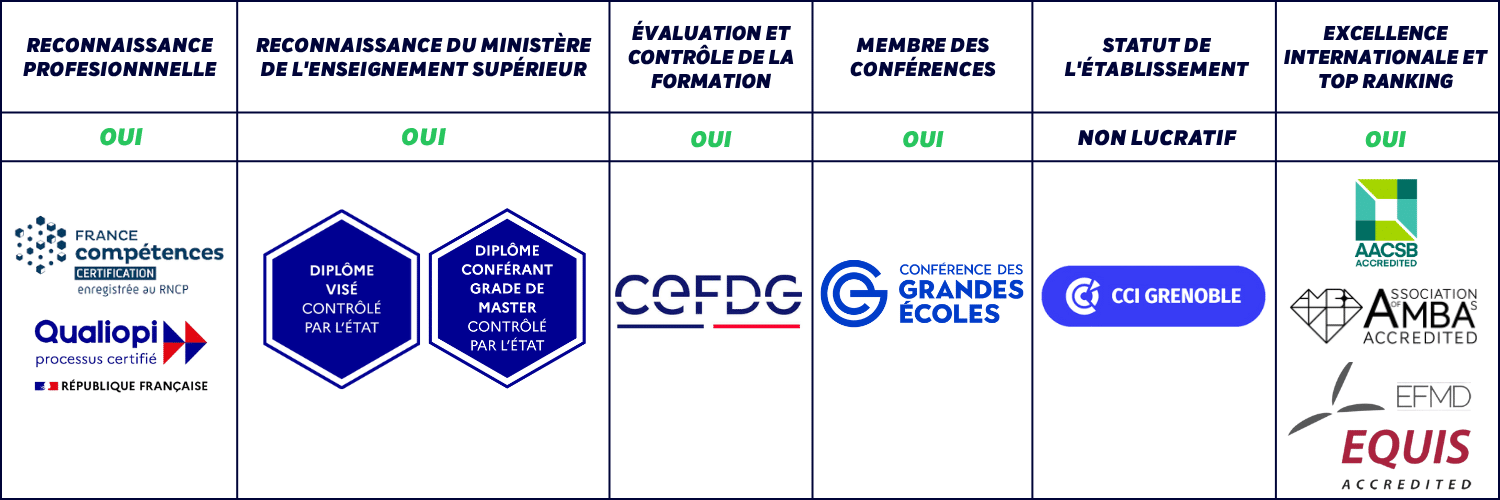 GEM Alpine Business School est une grande école de management reconnue au niveau national et international. Grâce à sa triple accréditation (EQUIS, AACSB, AMBA) et à ses diplômes visés par l’État, tu peux choisir ses formations en toute confiance.