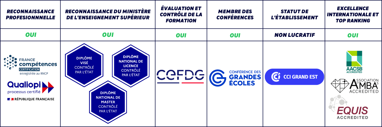 ICN Business School est une école de management reconnue au niveau national et international. Grâce à ses accréditations prestigieuses (EQUIS, AACSB, AMBA) et à ses diplômes visés par l’État, tu peux intégrer ses formations en toute confiance.