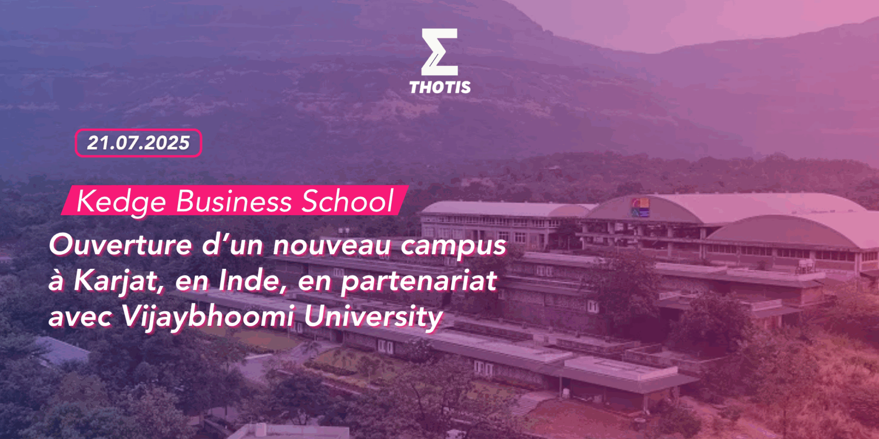 KEDGE Business School poursuit son expansion internationale avec l’ouverture d’un nouveau campus associé à Karjat, près de Mumbai, en Inde. Ce projet est mené en partenariat avec Vijaybhoomi University (VU) et sa business school JAGSoM (Jagdish Sheth School of Management). Il s’inscrit dans la stratégie globale de KEDGE, qui vise à former les élites locales de demain tout en répondant aux besoins éducatifs croissants dans des régions à fort potentiel, comme l’Asie et l’Afrique.