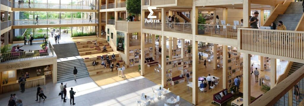 À Reims, NEOMA Business School prévoit d’inaugurer en janvier 2027 un campus d’envergure. Thotis a eu l’opportunité de visiter le chantier de ce futur site, pensé pour conjuguer responsabilité environnementale, expérience étudiante enrichie, innovation pédagogique et ancrage territorial.