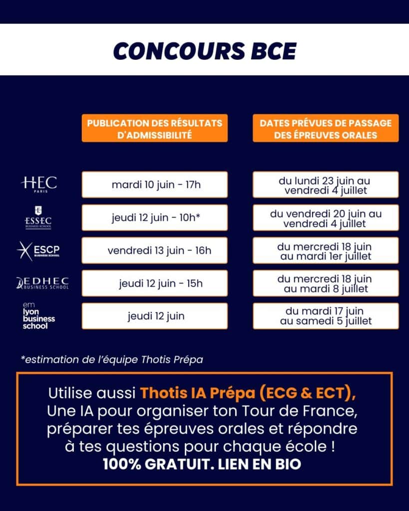- ESSEC BS : jeudi 12 juin, 10h (estimation Thotis Prépa)